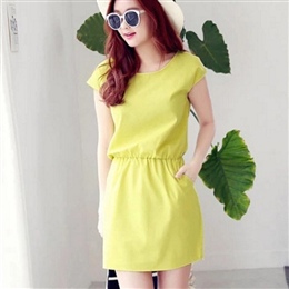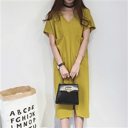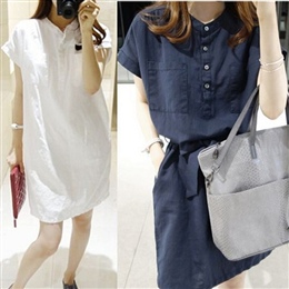 顯瘦休閒百搭口袋圓領短袖連身裙 [連身裙] #1-白色 #2-黑色