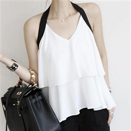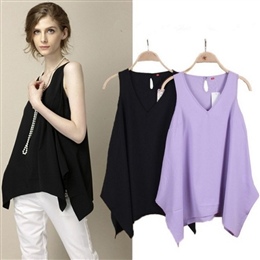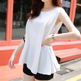 不規則簡約無袖上衣性感露肩雪紡衫 [背心.馬甲]