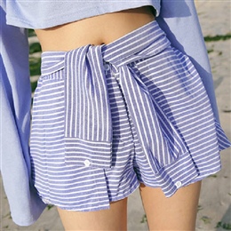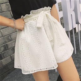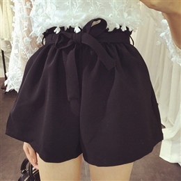 寬邊鬆緊高腰綁帶花苞闊腿短褲 [短褲]