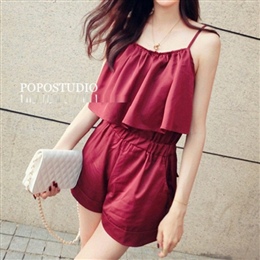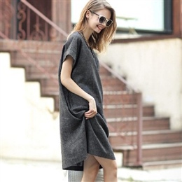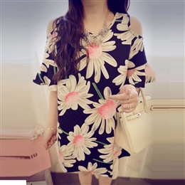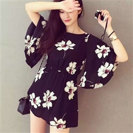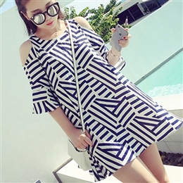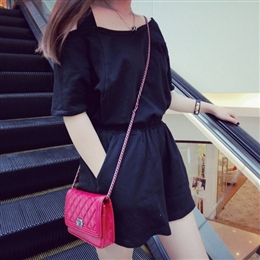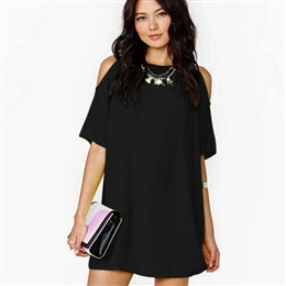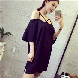 性感前後交叉露肩露背純色寬鬆五分袖連身裙 [連身裙]