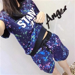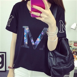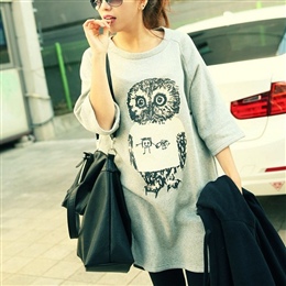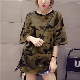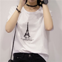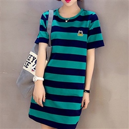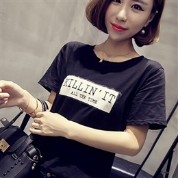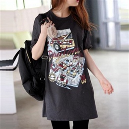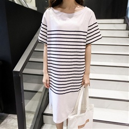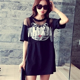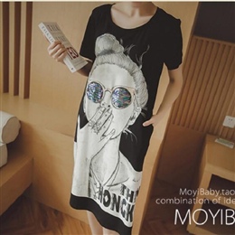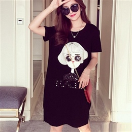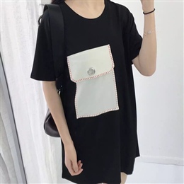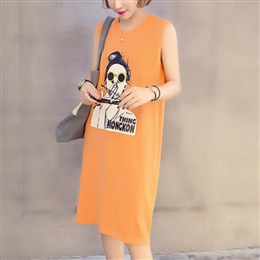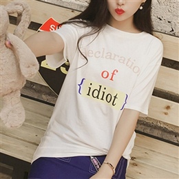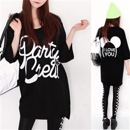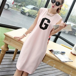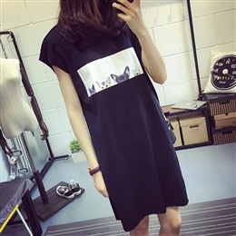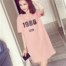 套頭圓領短袖字母印花中長款上衣 [連身裙]
