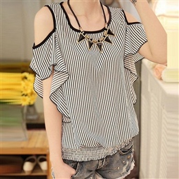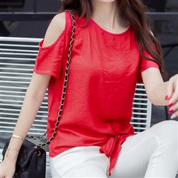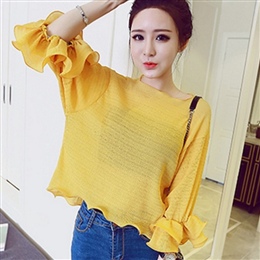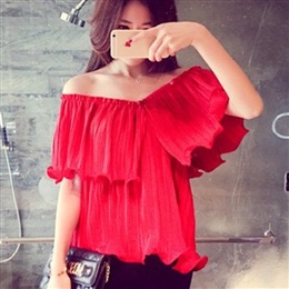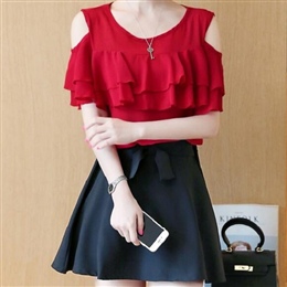 露肩雙層雪紡衫上衣 [上衣] #1-白色 #2-黃色 #3-黑色