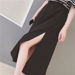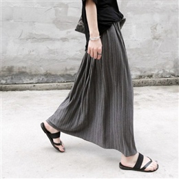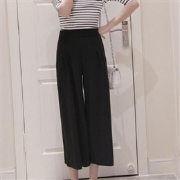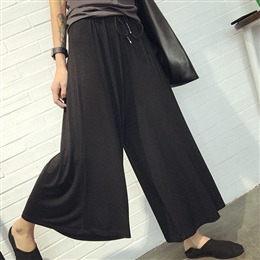 百搭慵懶款寬鬆裙褲鬆緊腰舒適闊腿褲 [褲子] #1-灰色 #2-黑色