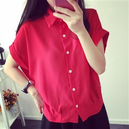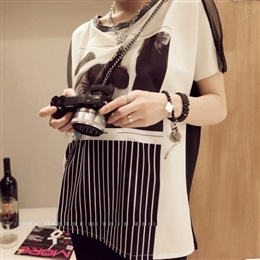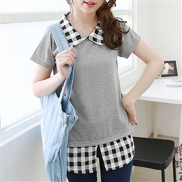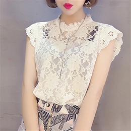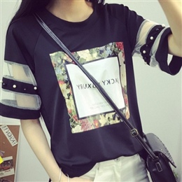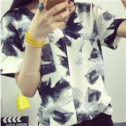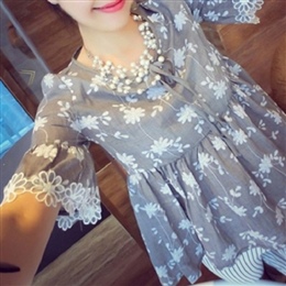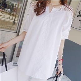 鏤空雪紡拼接短袖襯衫 [上衣] [襯衫]