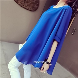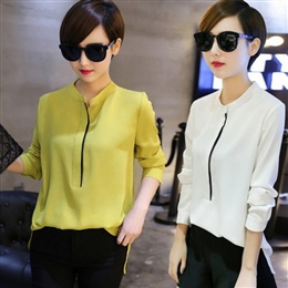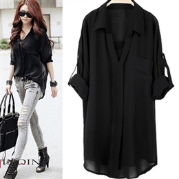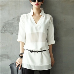 中長款雪紡襯衫 [上衣] [襯衫] #1-白色 #2-黑色