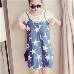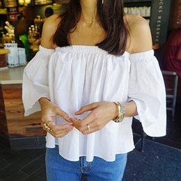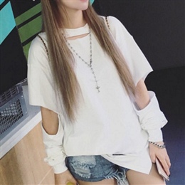 露肩星星寬鬆顯瘦上衣 [上衣] #1-白色 #2-藍色