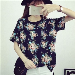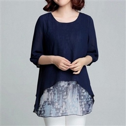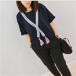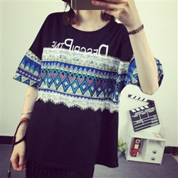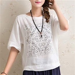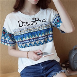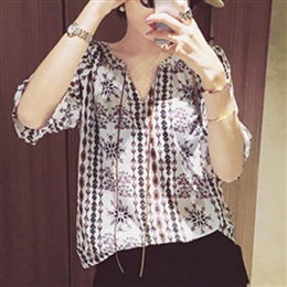 獨特花色印花袖子收口民族娃娃衫 [上衣] #1-深藍色 #2-白色