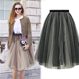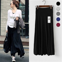 雪紡字中長高腰純色百褶半身裙 [半身裙] #1-黑色 #2-藍色