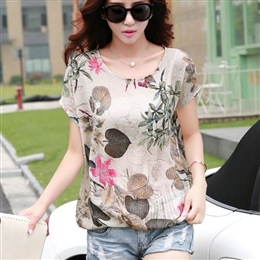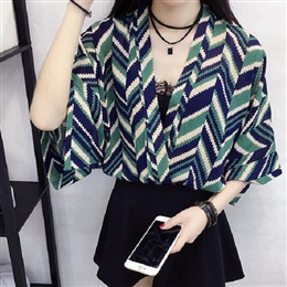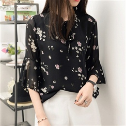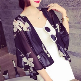 寬鬆喇叭袖雪紡外套 [外套] #1-花朵 #2-樹影