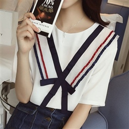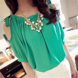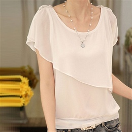 花邊短袖套頭雪紡衫 [上衣] #1-天藍色 #2-白色 #3-粉紅色 #4-綠色...