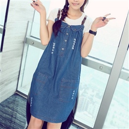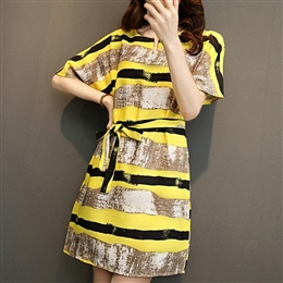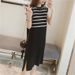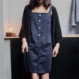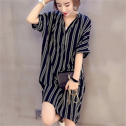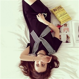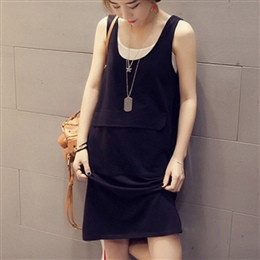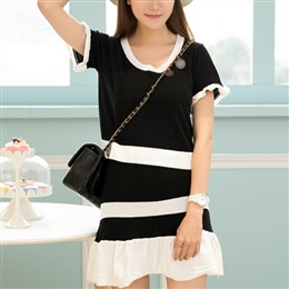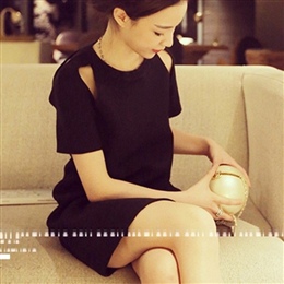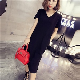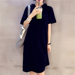 中長款半袖連身裙 [連身裙] #1-黑色 #2-寶藍色