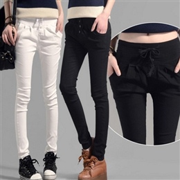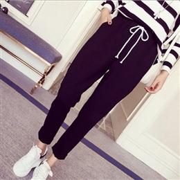百搭顯瘦舒適鬆緊腰休閒哈倫褲長褲 [褲子] #1-白色 #2-黑色