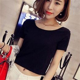 露臍彈力修身短款高腰上衣短袖 [TEE] #1-灰色 #2-白色 #3-黑色