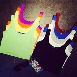 羅紋背心燒邊糖果色小吊帶背心 [背心.馬甲] #1-淺灰色 #2-明黃色 #3-...
