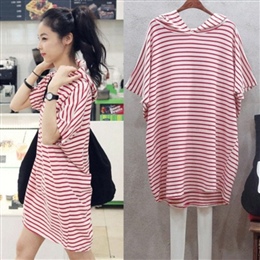 連帽短袖純色口袋連身裙 [連身裙] #1-紅色 #2-黑色