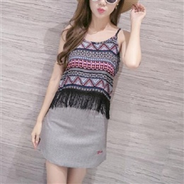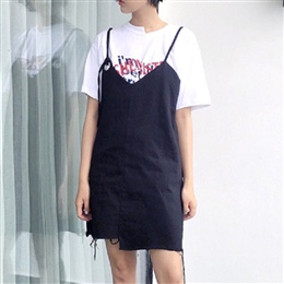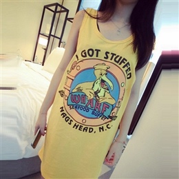 中長款印花小吊帶背心 [背心.馬甲] #1-白色 #2-黑色