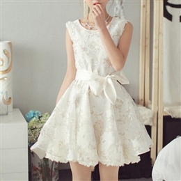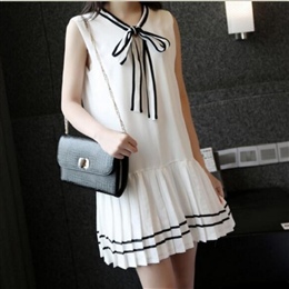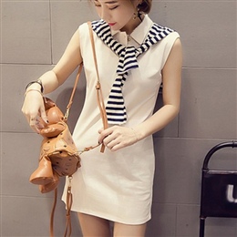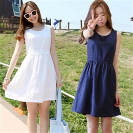 綁帶收腰氣質修身連身裙 [連身裙] #1-白色 #2-深藍色