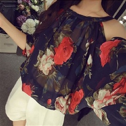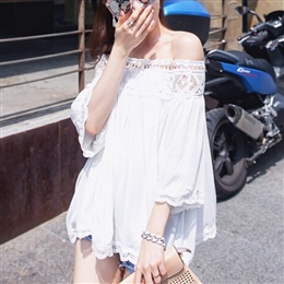 露肩寬鬆刺繡鏤空蕾絲襯衫 [上衣] [襯衫] #1-白色 #2-黑色