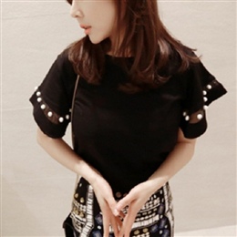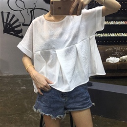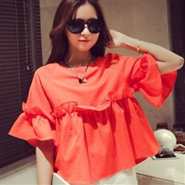 短袖荷葉袖百搭純色上衣 [上衣] #1-白色 #2-黃色 #3-黑色