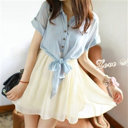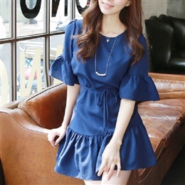喇叭袖連身裙 [連身裙] #1-粉紅色 #2-藍色