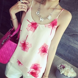 黃櫻桃雪紡背心吊帶背心修身顯瘦 [背心.馬甲]