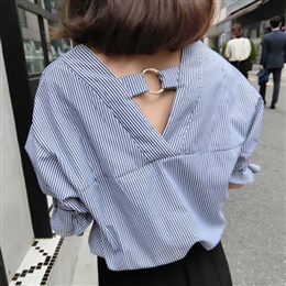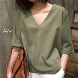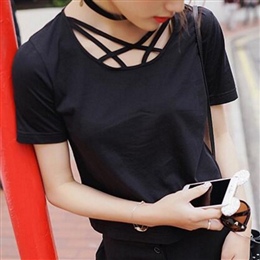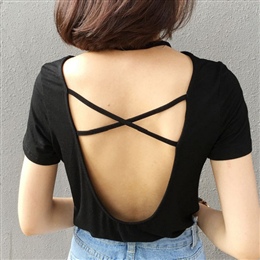 露背純色五分袖上衣 [上衣] #1-白色 #2-淺灰色 #3-深灰色 #4-黑色