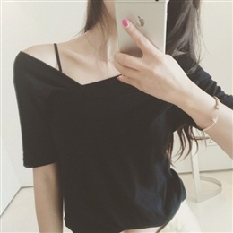 百搭露肩拼色性感吊帶背心上衣 [上衣] #1-白色 #2-黑色