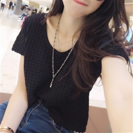 必 超顯瘦華夫格針織短袖上衣 [上衣] [TEE] #1-粉色 #2-白色 #3...
