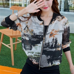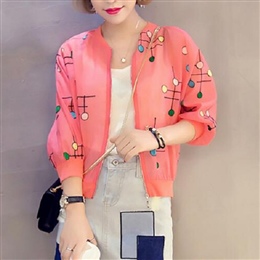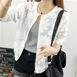 百搭蕾絲鏤空拉鍊小外套 [外套] #1-花花白 #2-花花黑 #3-扇子藍 #4...