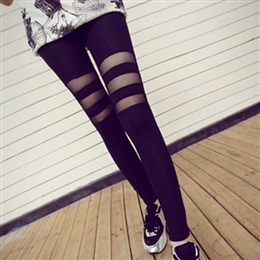 寬鬆黑紗拼接雪紡鬆緊腰哈倫褲 [褲子]