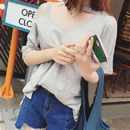 項圈寬鬆上衣上衣 [上衣] [TEE] #1-白色 #2-黑色 #3-咖啡色