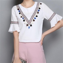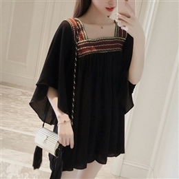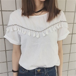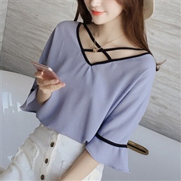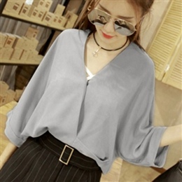 蝙蝠袖鏤空流蘇雪紡衫上衣 [上衣] #1-灰藍色 #2-杏粉色 #3-黑色
