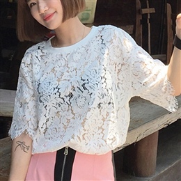 浮雕蕾絲衫 [上衣] #1-白色 #2-灰色
