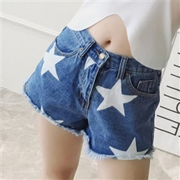 破洞牛仔短褲 顯瘦熱褲 [短褲] #1-白色 #2-黑色 #3-孔雀藍