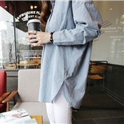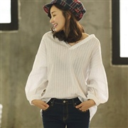 寬鬆長袖襯衫蝙蝠袖鏤空襯衫 [百搭淨色] [上衣]...