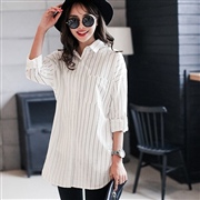 簡約百搭中長款豎條紋翻領長袖襯衫 [Mix&...