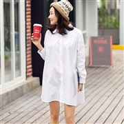 白色襯衫長袖襯衫中長款寬鬆 [百搭淨色] [上衣]...