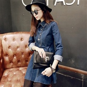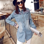 民族復古刺繡襯衫長袖翻領牛仔襯衫 [經典牛仔] [...