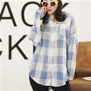 寬鬆格子襯衫長袖中長透氣竹節襯衫 [英倫格子] [...