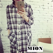 百搭翻領格子長款襯衫 襯衫 [英倫格子] [上衣]