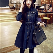 長袖修身荷葉邊牛仔連身裙 [經典牛仔] [連身裙]