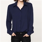 色糖果色純色翻領長袖襯衫 [百搭淨色] [上衣] ...