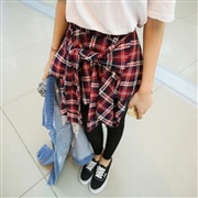 格子假襯衫拼接不規則修身褲裙褲色 [英倫格子] [...