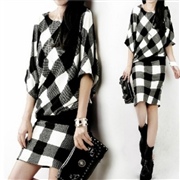 格子蝙蝠袖中袖修身長裙連身裙包臀氣質 [英倫格子]...
