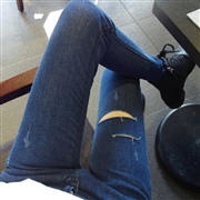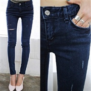 劃破抓紋修身顯瘦小腳牛仔褲 [經典牛仔] [牛仔褲...