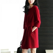 裝氣質大紅色蕾絲拼接短裙連身裙 [迷人蕾絲] [連...