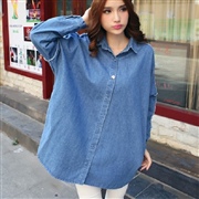 寬鬆休閒牛仔水洗襯衫長袖襯衫 [經典牛仔] [上衣...