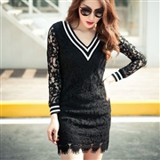 蕾絲睫鏤空毛九分袖連身裙 [黑白配對] [連身裙]