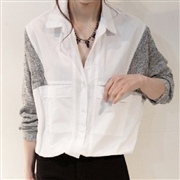 感剪裁灰針織袖子拼接寬鬆襯衫 [Mix&M...