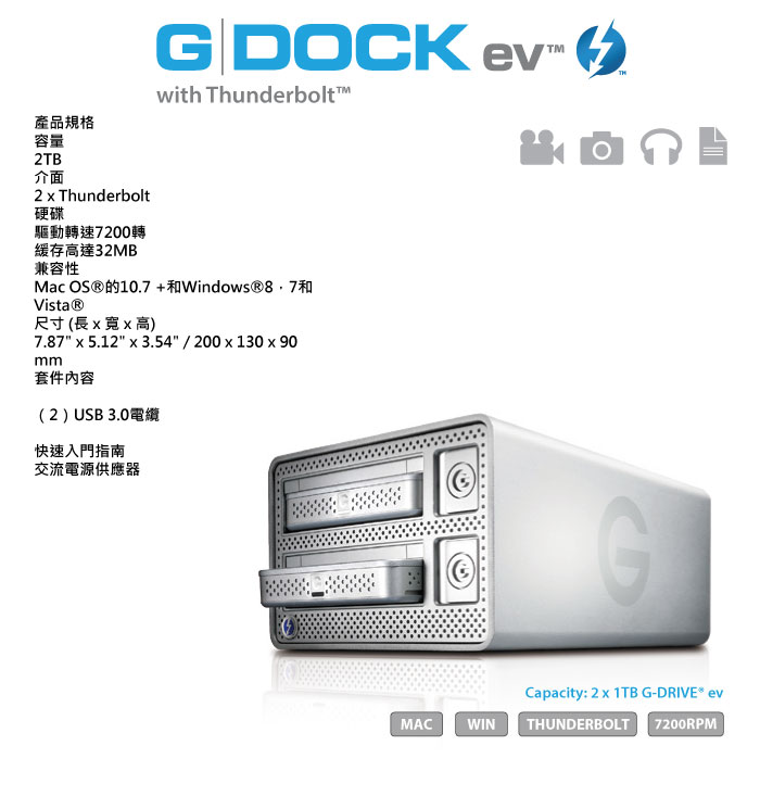 [編號 G-DOCK ev with Thunderbolt 2×1TB]